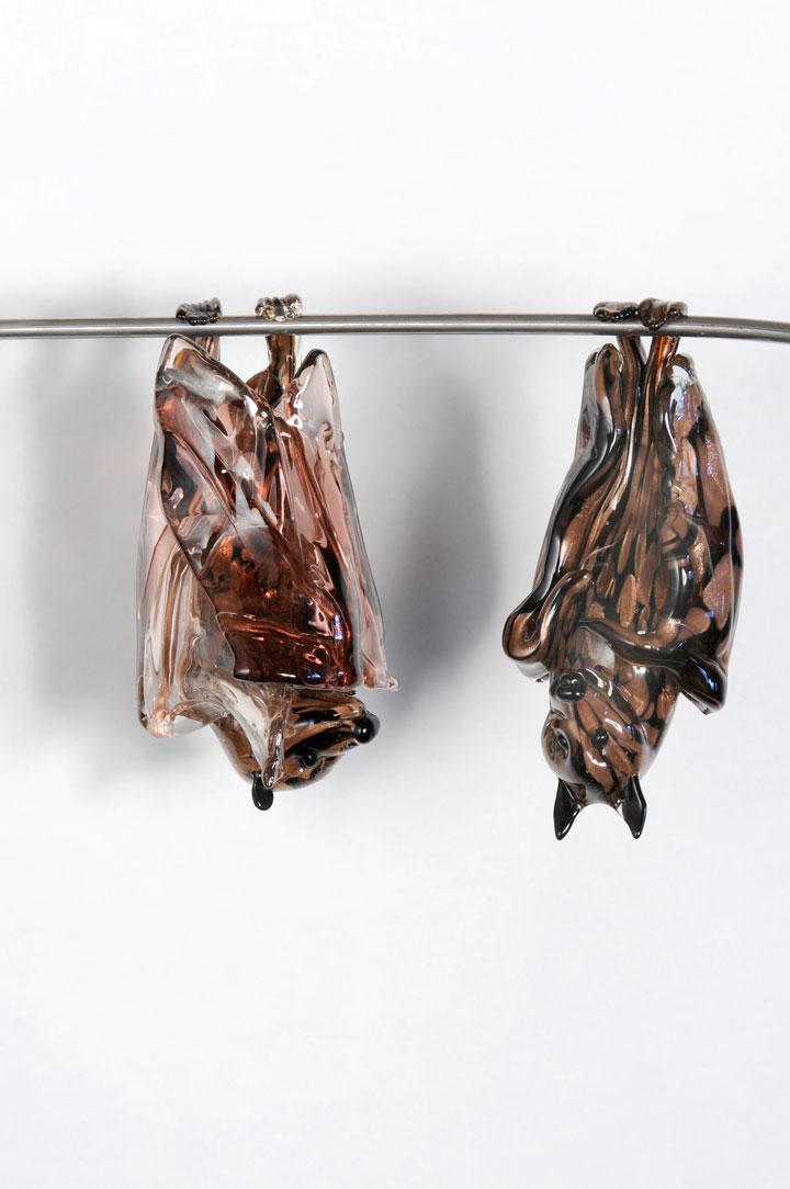 Murano glass, avventurine and stainless steel branch with Murano glass leaves.