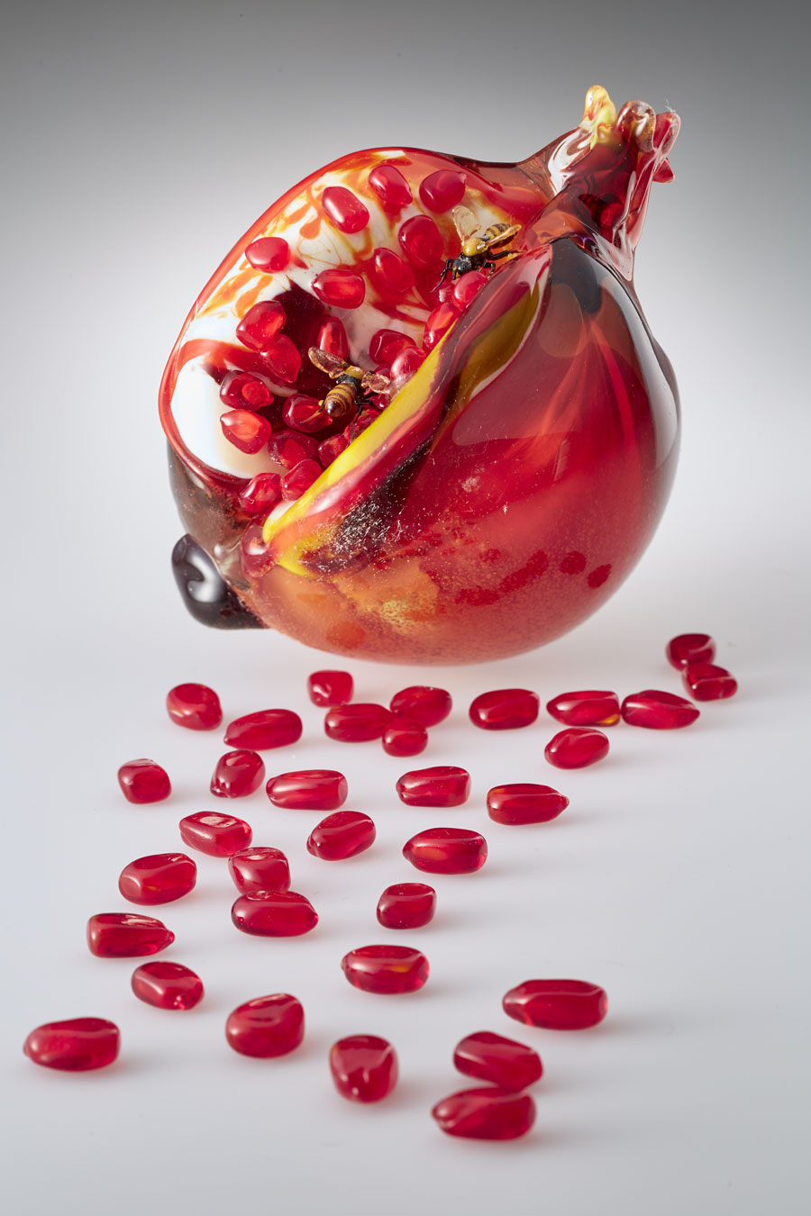 Pomegranate 2, 2017, 18 X 10 cm | 7" x 4" with bee(s), 1.5 X 0.5 cm | 0.5 x 0.25 in. seeds