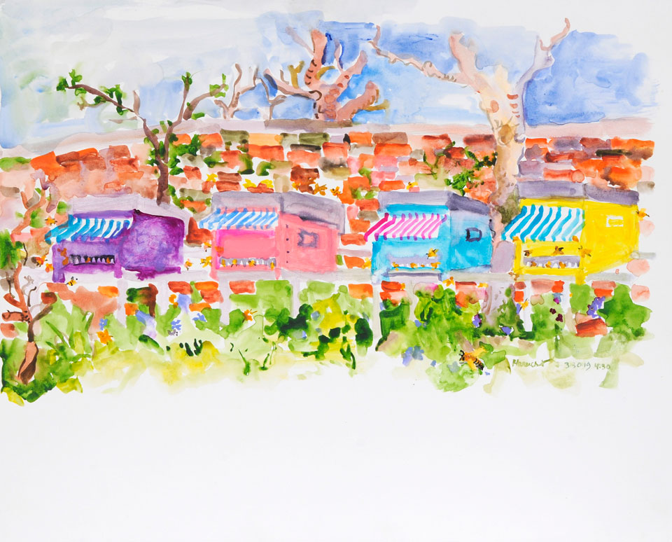 Watercolor on paper for "The Mysterious Traveling Honeybees of Venice" artist book, 2019 17.7 x 19.7 inches | 40 X 50 cm